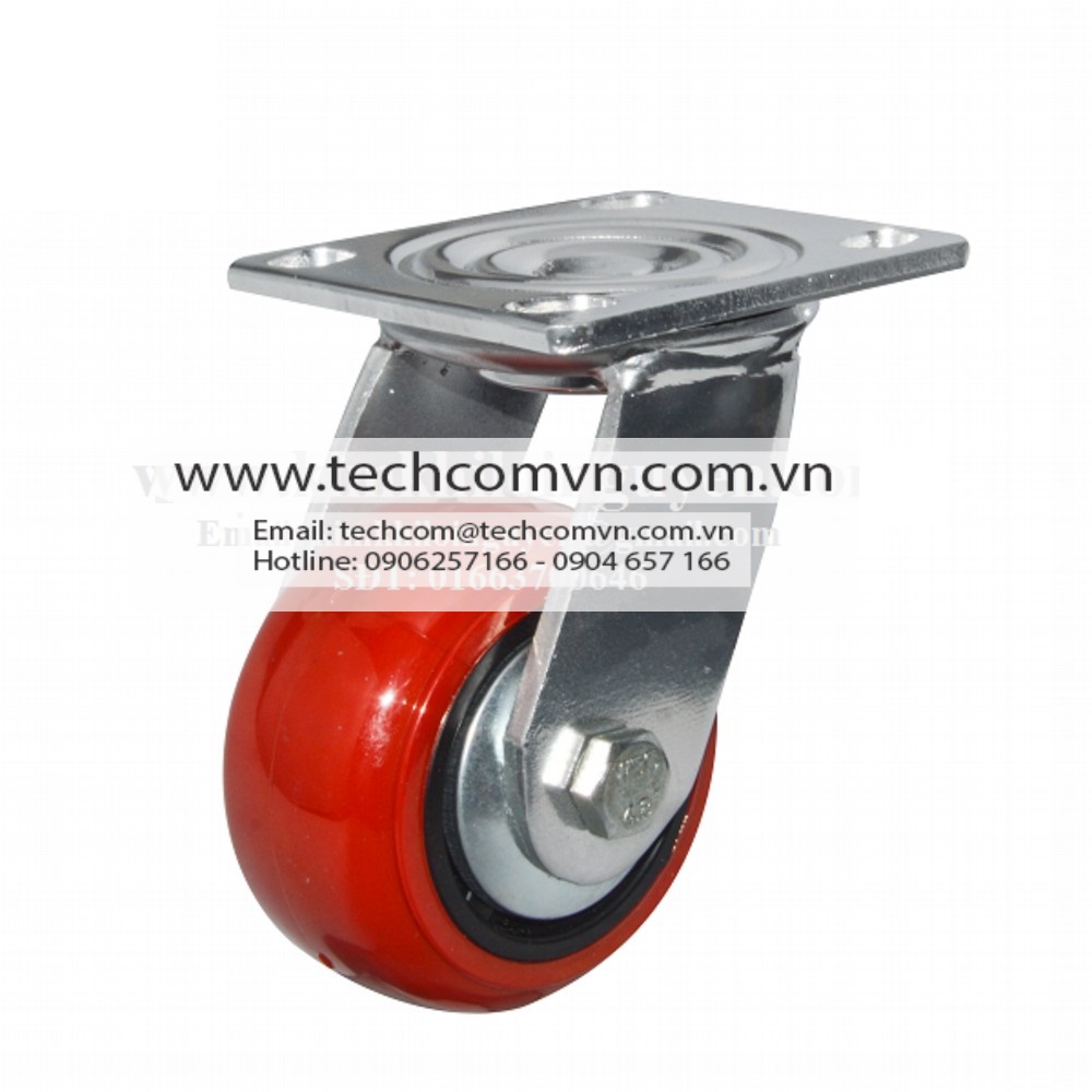Càng thép và bánh xe PU rất dày, rất nặng. Đây là dòng bánh xe có tải trọng lớn mà TECHCOM VIETNAM đang cung cấp, mỗi bánh xe tải được tới vài tạ.