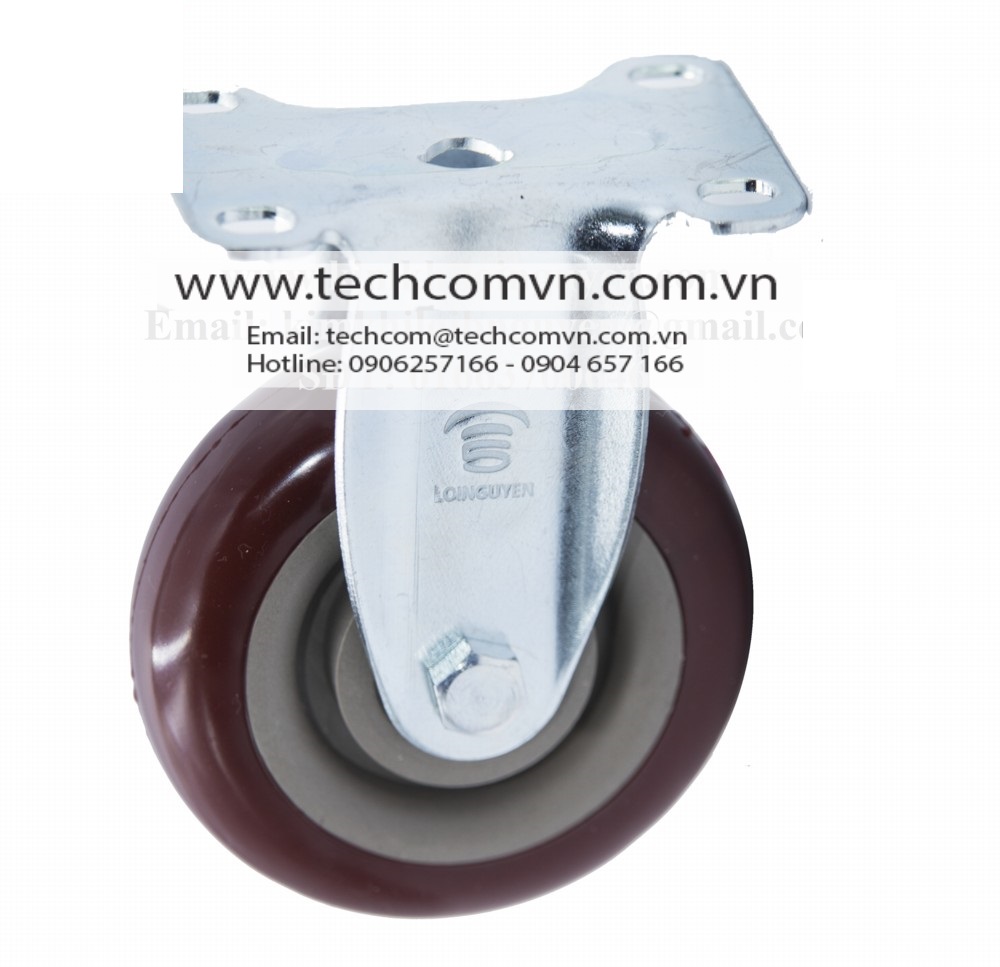 Càng thép và bánh xe PA rất dày, rất nặng. Đây là dòng bánh xe có tải trọng lớn nhất mà TECHCOM VIETNAM đang cung cấp, mỗi bánh xe tải được tới vài tấn. Cổ xoay có bi tì và bi côn nên đảm bảo xoay hướng nhẹ nhàng kể cả khi đang chất tải nặng