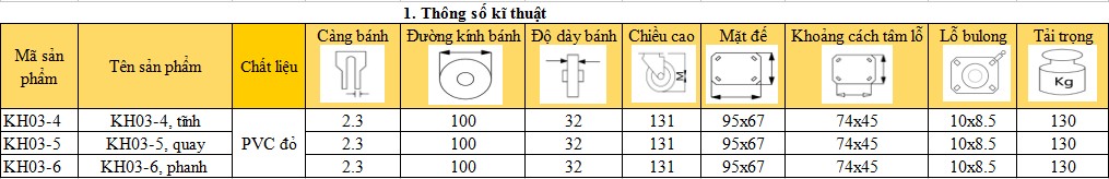 Đặc điểm riêngCàng thép dày, chắc chắn. Cổ xoay bi tì và bi côn chịu lực. Bánh nhựa PA gia cường có tải trọng lên tới vài tấn/ 01 bánh xe