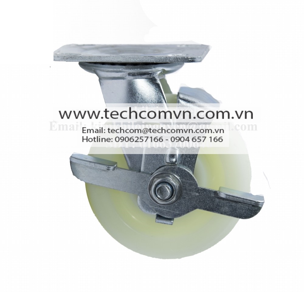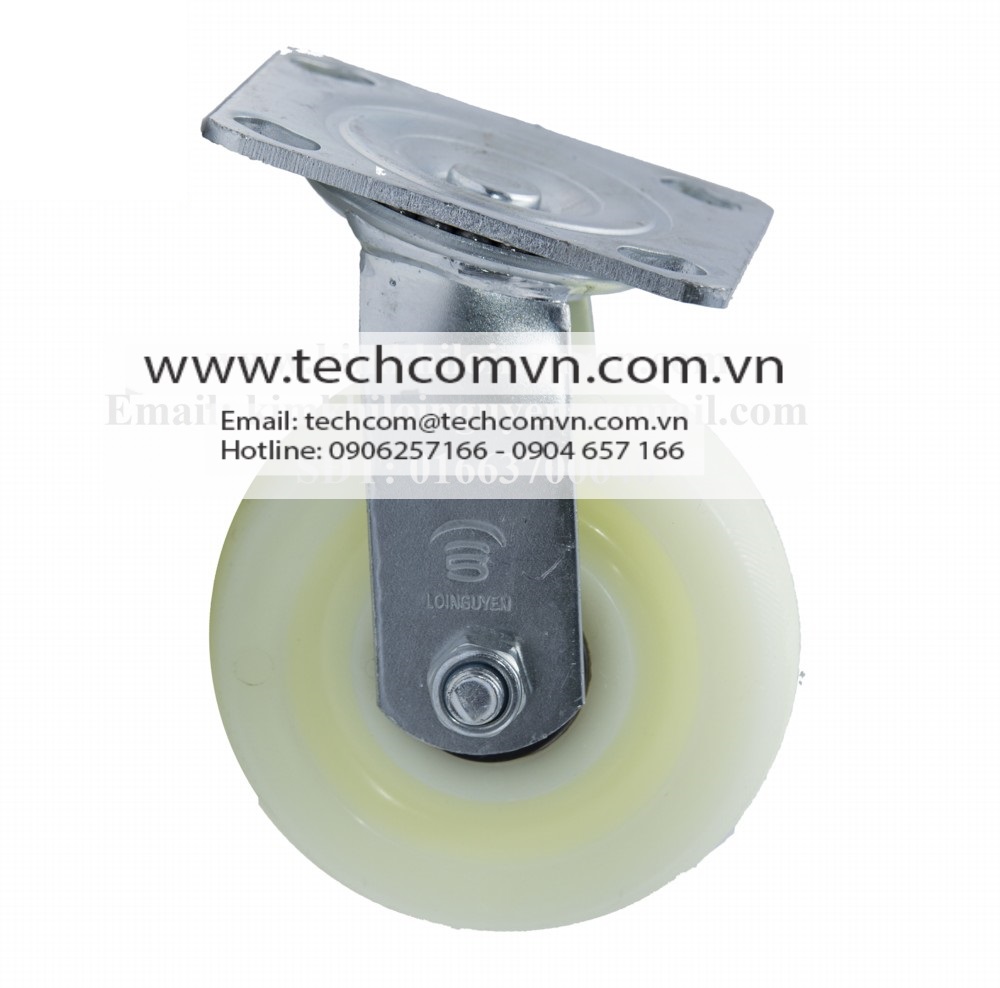 | Đặc điểm riêng | Càng thép dày, chắc chắn. Cổ xoay bi tì và bi côn chịu lực. Bánh nhựa PA gia cường có tải trọng lên tới vài tấn/ 01 bánh xe |