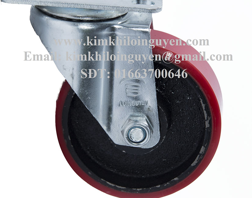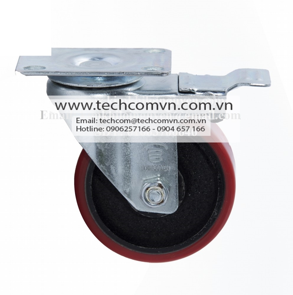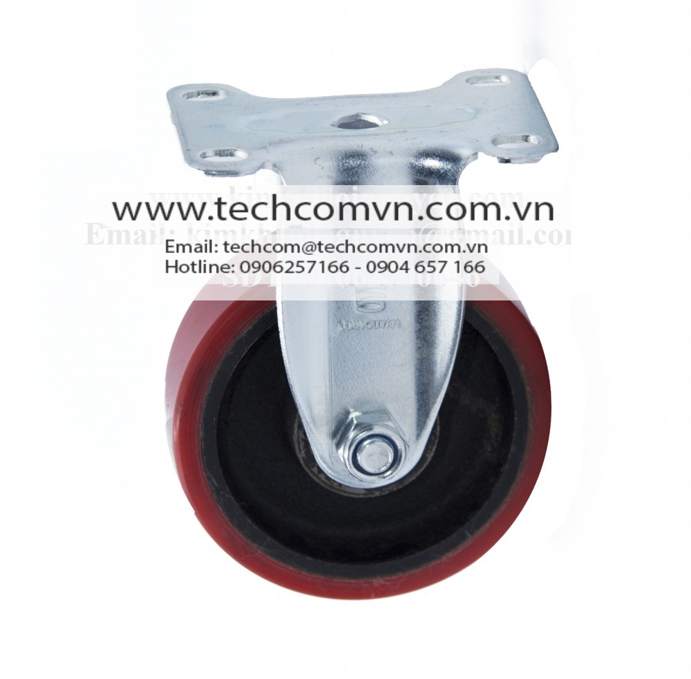 Càng thép và bánh xe PU rất dày, rất nặng. Đây là dòng bánh xe có tải trọng lớn mà TECHCOM VIETNAM đang cung cấp, phù hợp dùng trong nhà máy, thiết bị công nghiệp. Cổ xoay có bi tì và bi côn nên đảm bảo xoay hướng nhẹ nhàng kể cả khi đang chất tải nặng